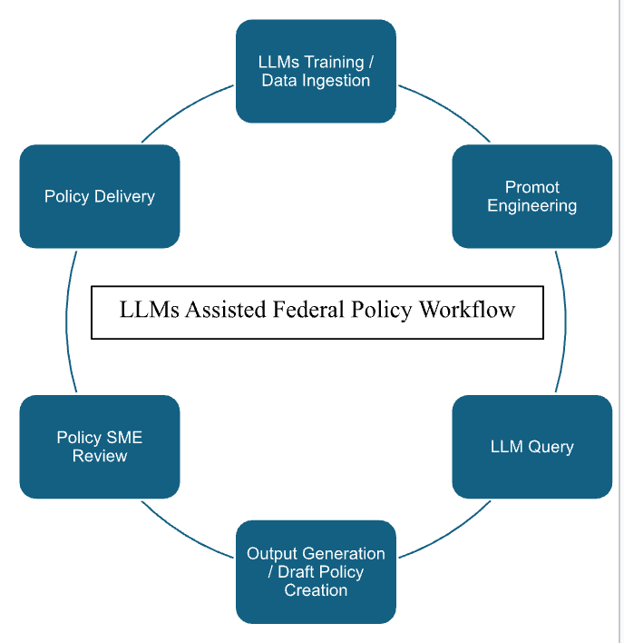 Imagine a scenario where a health agency leverages an LLM for policy development. This LLM, trained on a curated and continually updated dataset of relevant materials such as NIST guidance, Executive Orders, and past policies, could assist in: